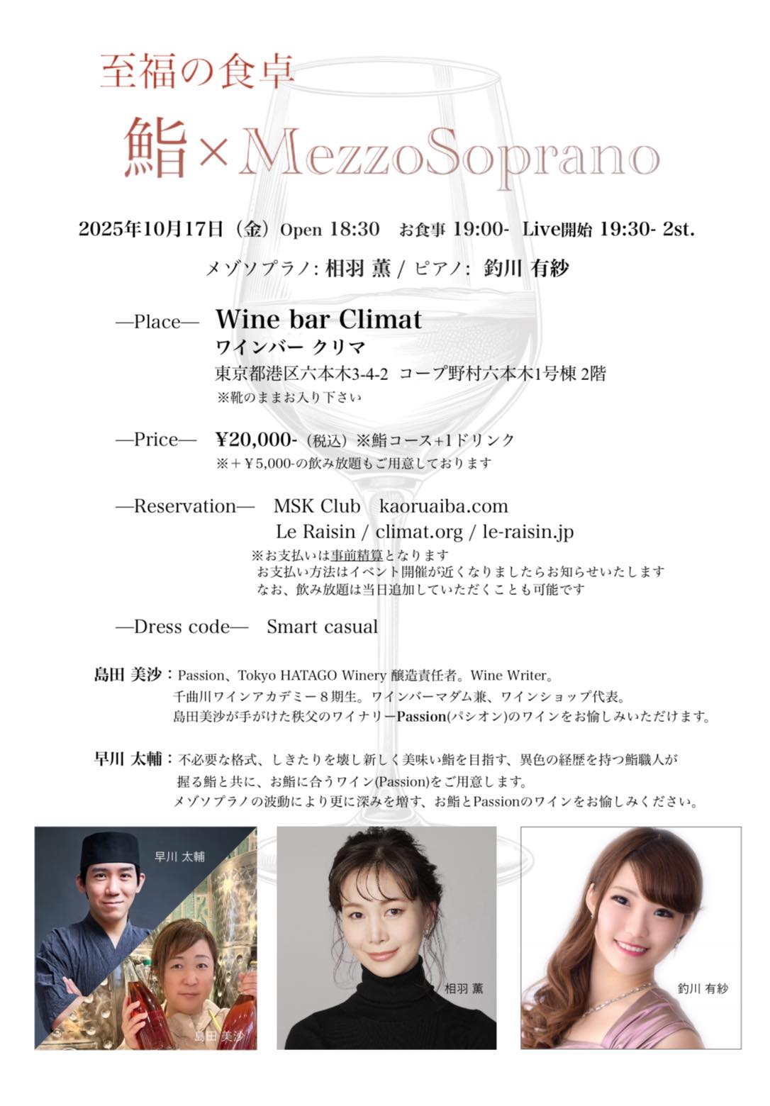 10/17に相羽薫さん&釣川有紗さん お鮨での「至福の食卓」が開催決定しました!